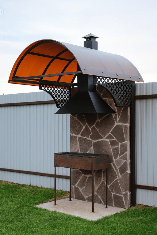 - Размер и форма: навес под мангальную зону изготавливается по индивидуальным размерам — цена зависит от площади и особенностей размещения.
